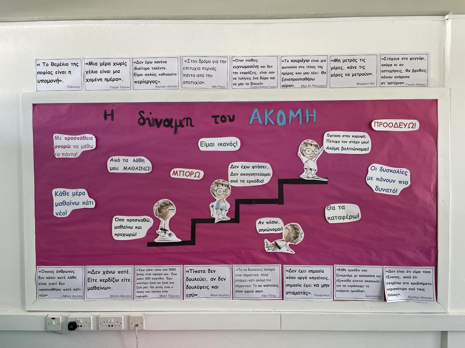 Στο σχολείο μας, τις σχολικές χρονιές 2024-26 εφαρμόζεται το ευρωπαϊκό πρόγραμμα "Ενίσχυση της ψυχικής υγείας, της ευημερίας και της ψυχικής ανθεκτικότητας μαθητών και εκπαιδευτικών". Το πρόγραμμα έχει διάρκεια 18 μήνες, από την 1η Σεπτεμβρίου 2024 μέχρι την 28η Φεβρουαρίου 2026. Στις δραστηριότητες του προγράμματος περιλαμβάνεται η παρακολούθηση 5 εκπαιδευτικών σεμιναρίων σε χώρες της Ευρωπαϊκής Ένωσης, τα οποία θα παρακολουθήσουν εκπαιδευτικοί του σχολείου μας. Την ομάδα συντονισμού του Ευρωπαϊκού Προγράμματος αποτελούν ο διευθυντής του σχολείου μας κ. Κώστας Λουκά, η σχολική σύμβουλος κ. Μαρίνα Μιχαηλίδου και οι εκπαιδευτικοί του σχολείου μας κ. Έλενα Κουνέ και κ. Ελένη Μιχαήλ. Γενική Υπεύθυνη του προγράμματος είναι η κ. Έλενα Κουνέ.