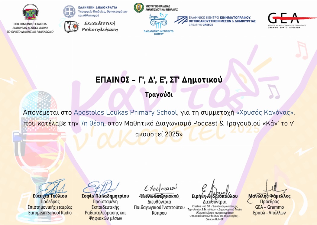 11. Συμμετοχή και Διάκριση στον Πανελλήνιο Διαγωνισμό Ραδιοφωνικού Podcast και Τραγουδιού «Κάν’ το ν’ ακουστεί 2025».